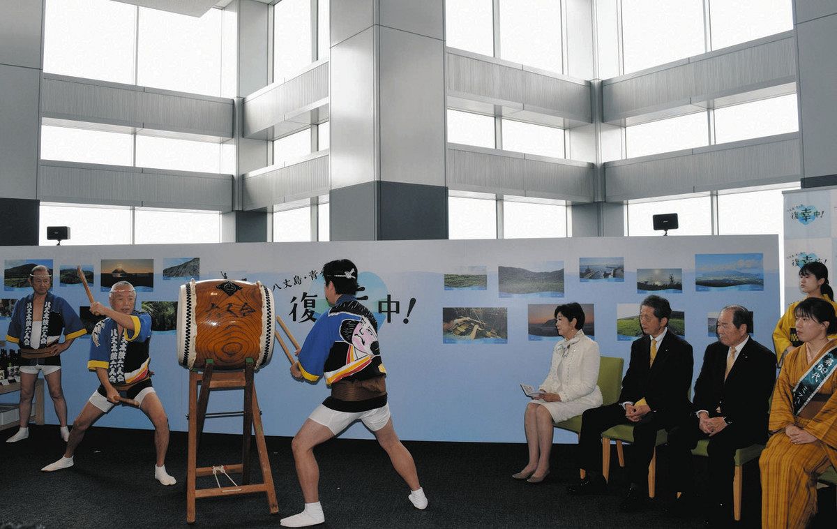 オープニングセレモニーでは、江戸時代から続く伝統芸能・八丈太鼓が披露された。都は「八丈島・青ケ島、復幸中!」のキャッチフレーズで復興支援に取り組んでおり、小池百合子知事は、「ピンチをチャンスに変える発想で、ただ元通りにするのではなく以前にも増して魅力のある島...