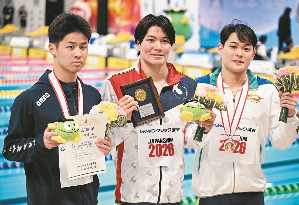 競泳の日本選手権第3日は21日、愛知・名古屋アジア大会(9~10月)などの代表選考会を兼ねて東京アクアティクスセンターで行われ、男子2...
