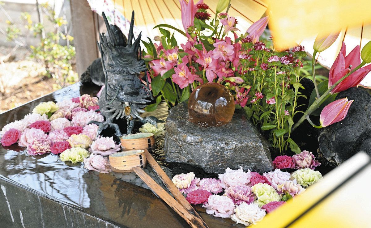 水に浮かぶ華やかな花が美しい法輪寺(東京都新宿区)の花手水。コロナ禍の時、ひしゃくを持つのをためらう参拝者へのもてなしとして始めた。 ...