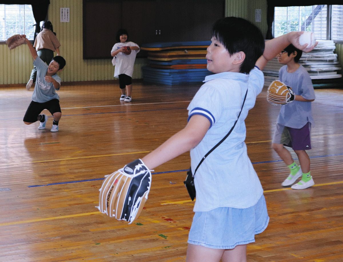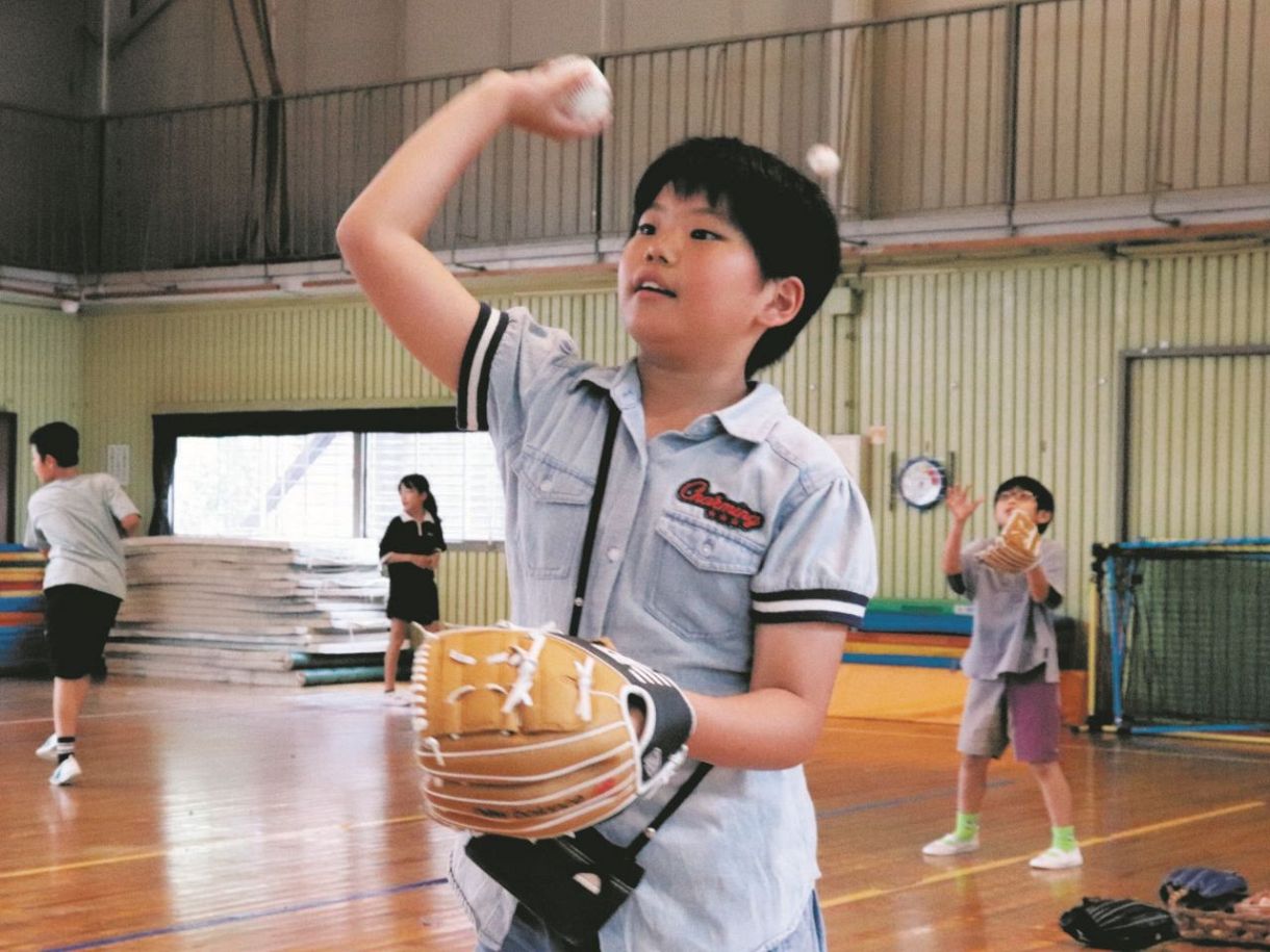 現在は2~6年生の約20人が夏場を除き、多い時には週4回、キャッチボールしている。「大谷グラブ」に加え、保護者に寄付を呼びかけて人数分のグラブを確保。安全のためボールは日本プロ野球選手会が開発した柔らかい専用球を使用している。本年度中に校内で野球大会の開催を目指している。
