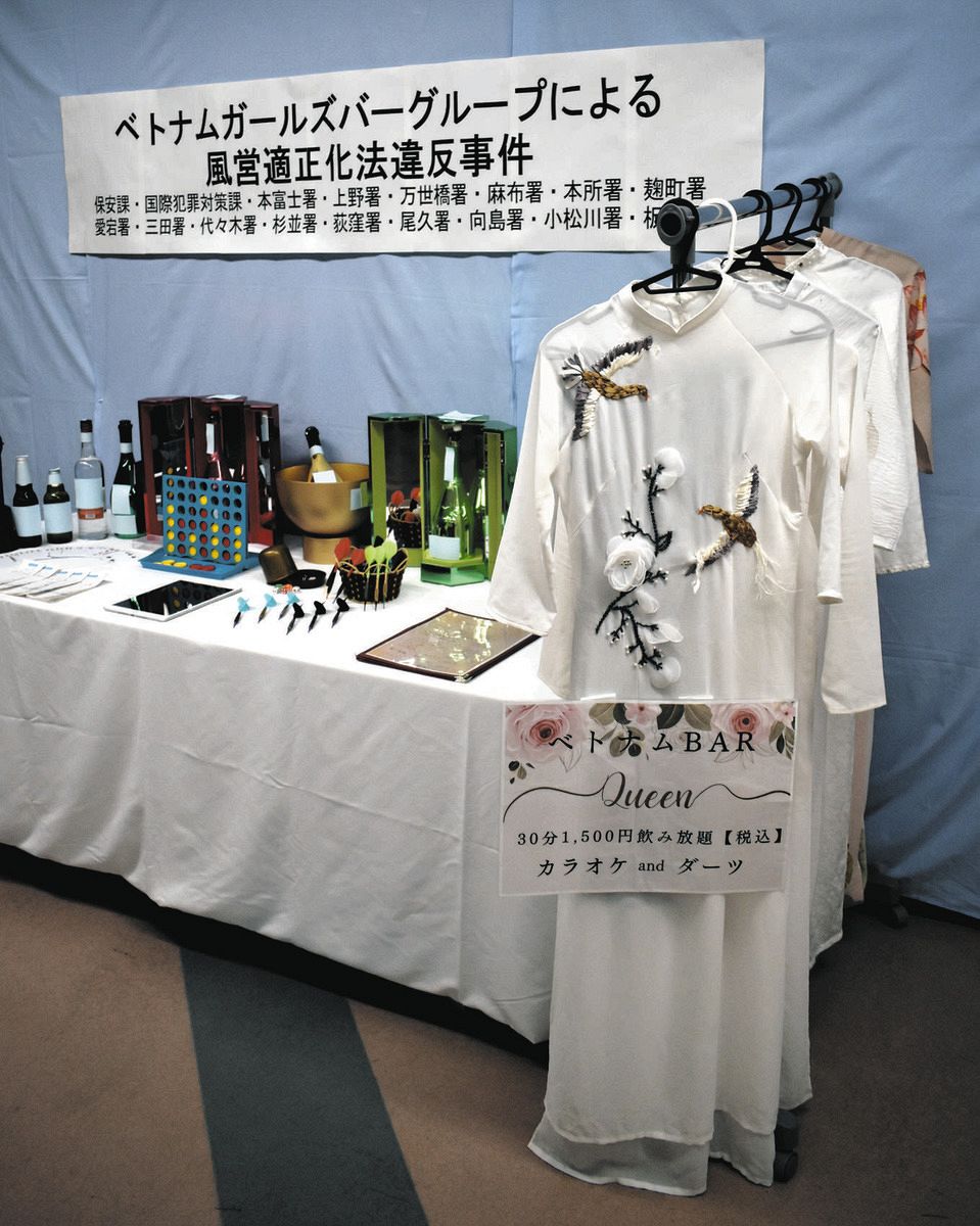 ベトナム人ガールズバーグループから押収された民族衣装のアオザイなど=本富士署で